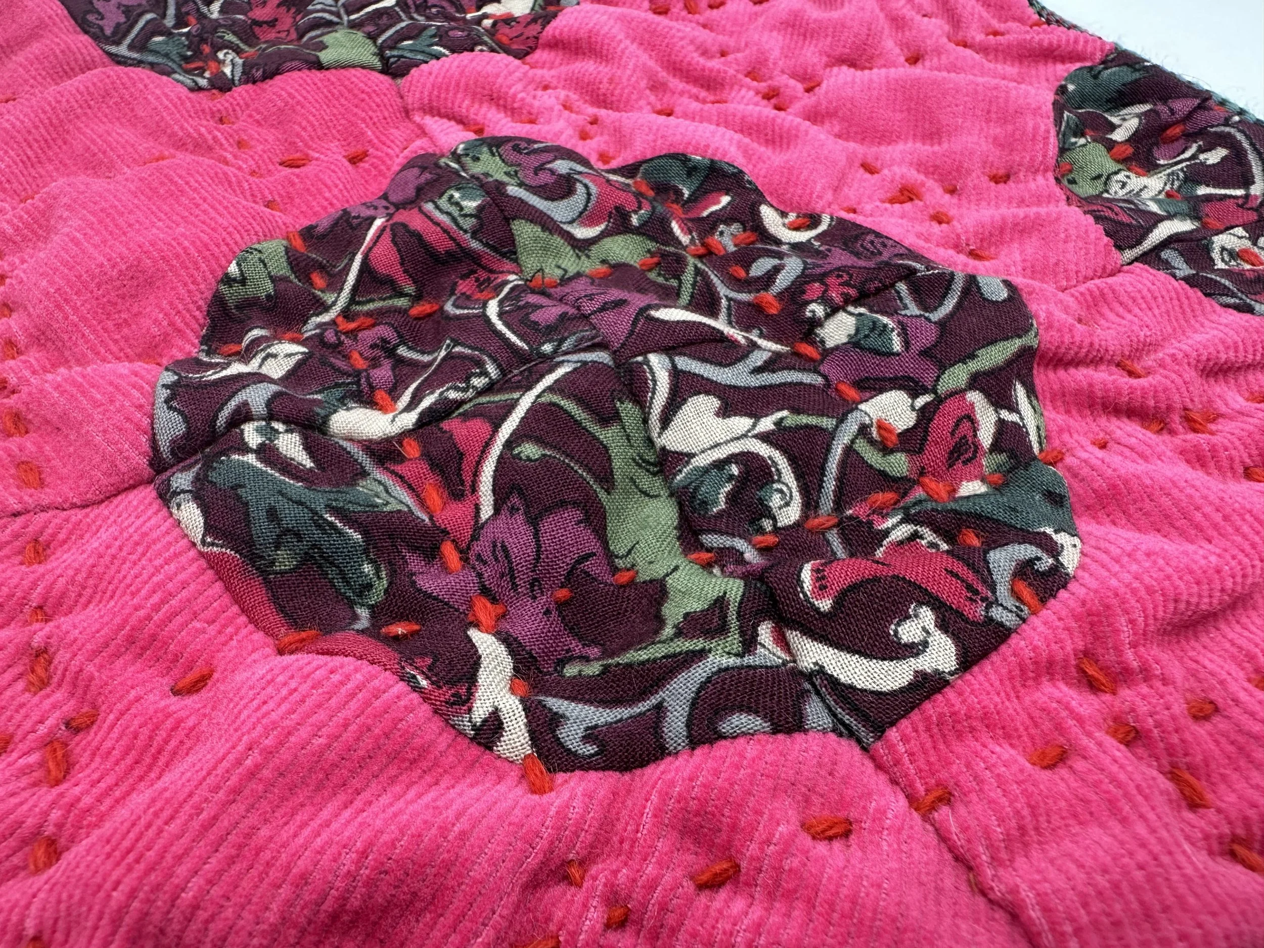 Pink Snowball Quilt, 2023Bring pink corduroy leftover, strange creatures, thick red stitches. View fullsize View fullsize View fullsize View fullsize